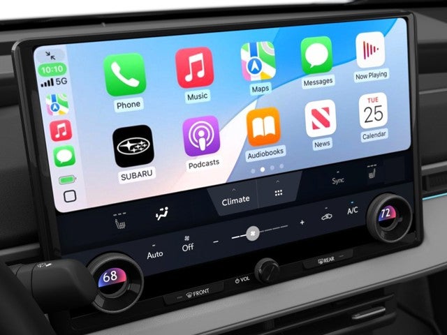 - Radio: Subaru 14" Multimedia System -inc: AM/FM stereo HD radio, multi-touch gesture high resolution display screen, cloud navigation system (navigation subscription required), Bluetooth® audio streaming and hands-free phone connectivity (refer to subaru.com for cell phone compatibility), Bluetooth® hands-free SMS text messaging connectivity (refer to subaru.com for cell phone compatibility), iPod control capability, SiriusXM All Access radio (4 months free trial included/subscription required after), smartphone integration: Android Auto and Apple Carplay w/full screen view and wireless connection, integrated streaming (30 days trial included/subscription required after), assistant w/dual-zone voice control system w/driver and passenger headliner microphone, steering wheel talk switch and audio system, basic function operation, media operation and audio tune operation, USB and Over The Air (OTA) audio system update, USB/Map Over The Air (MOTA) navigation system update, steering wheel control switches for audio and Bluetooth®, 6 speakers, dual Qi (15W each), wireless charging pad, illuminated driver USB C input/charge port and illuminated passenger USB C charge port