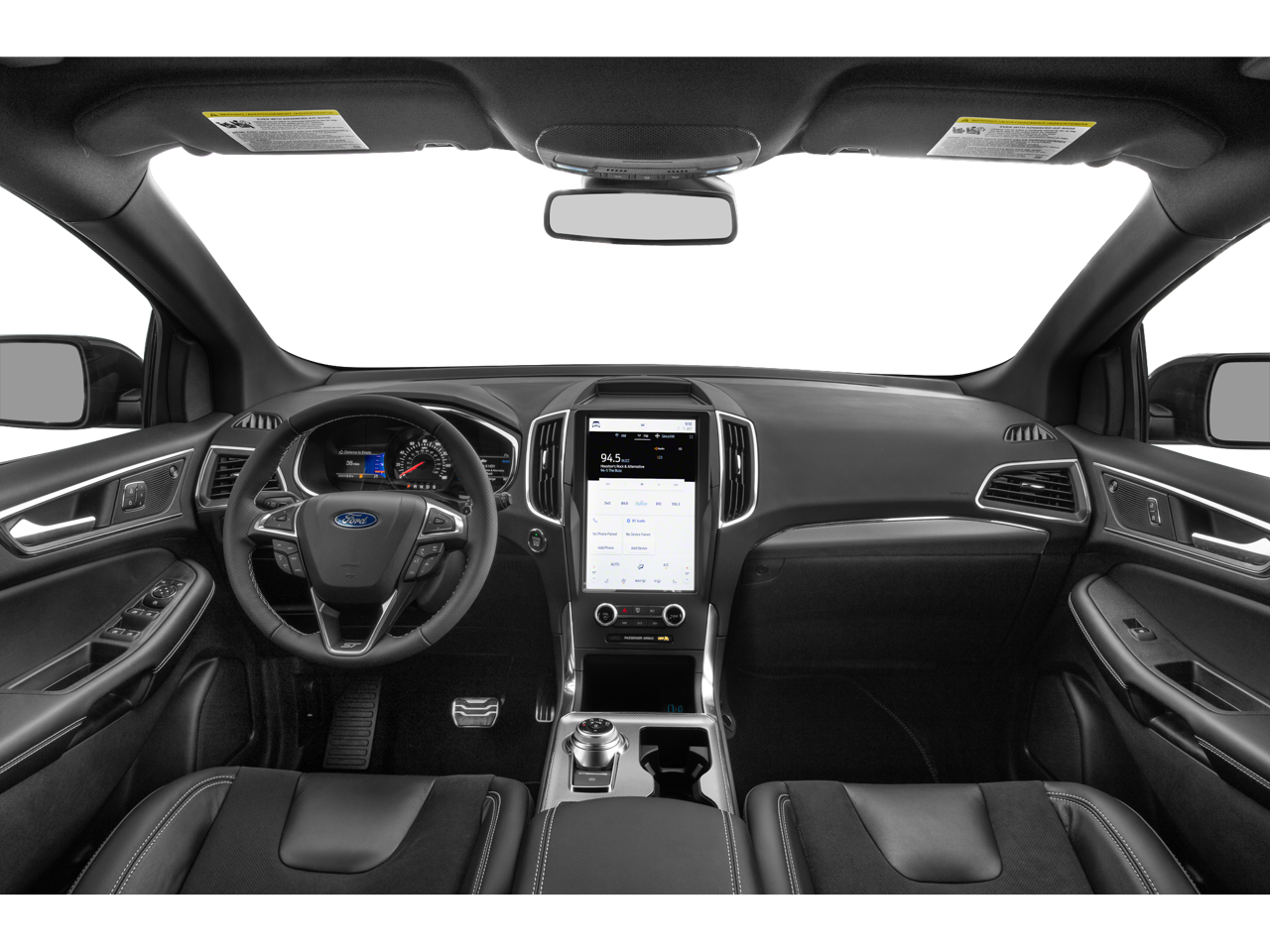 Safety and convenience are paramount in the Edge ST, with features like Adaptive Cruise Control, Lane Centering, Evasive Steering Assist, and a Hands-Free Liftgate providing added peace of mind and versatility. The 180-degree Front Camera with Split View enhances visibility, while the Panoramic Vista Roof floods the cabin with natural light.